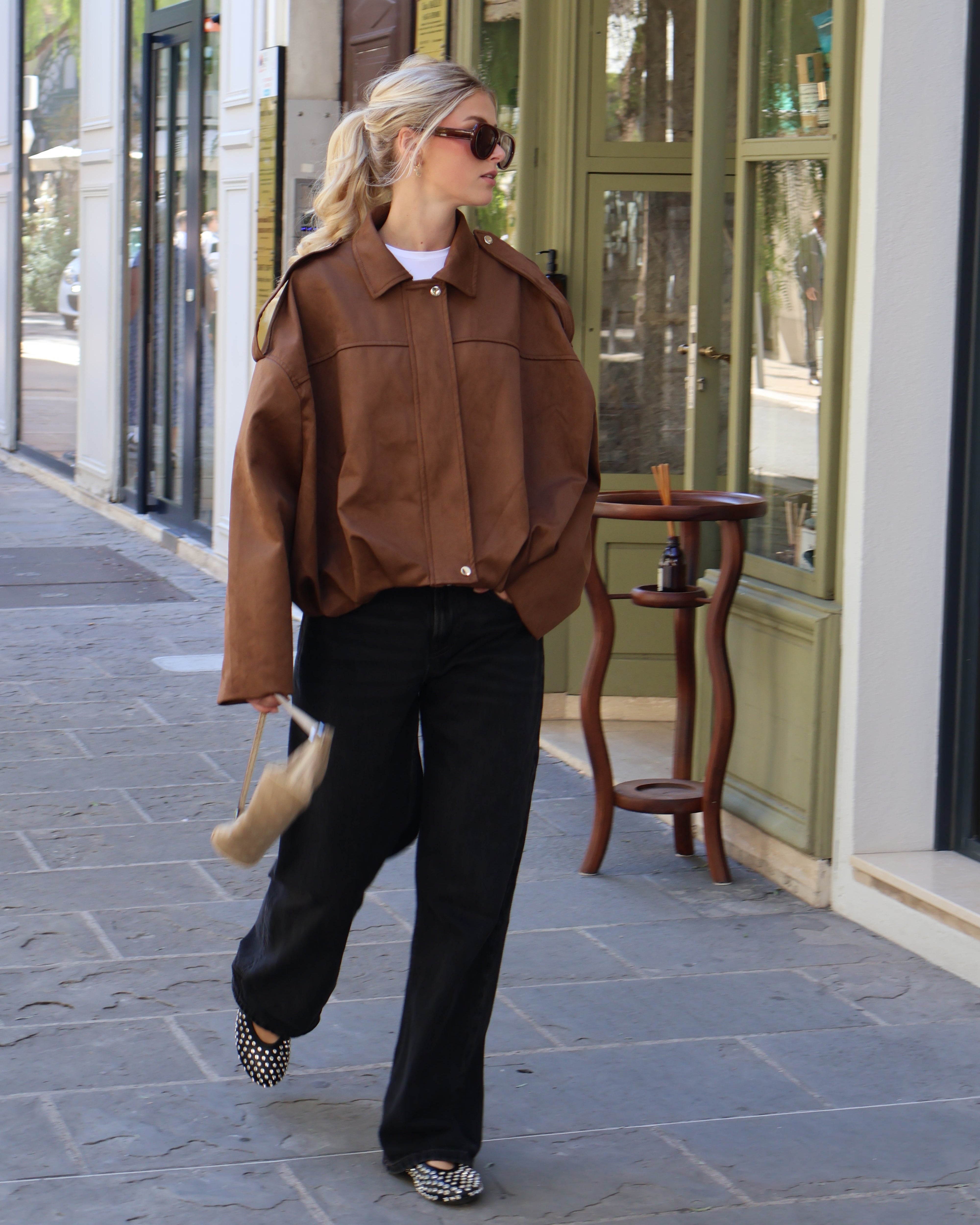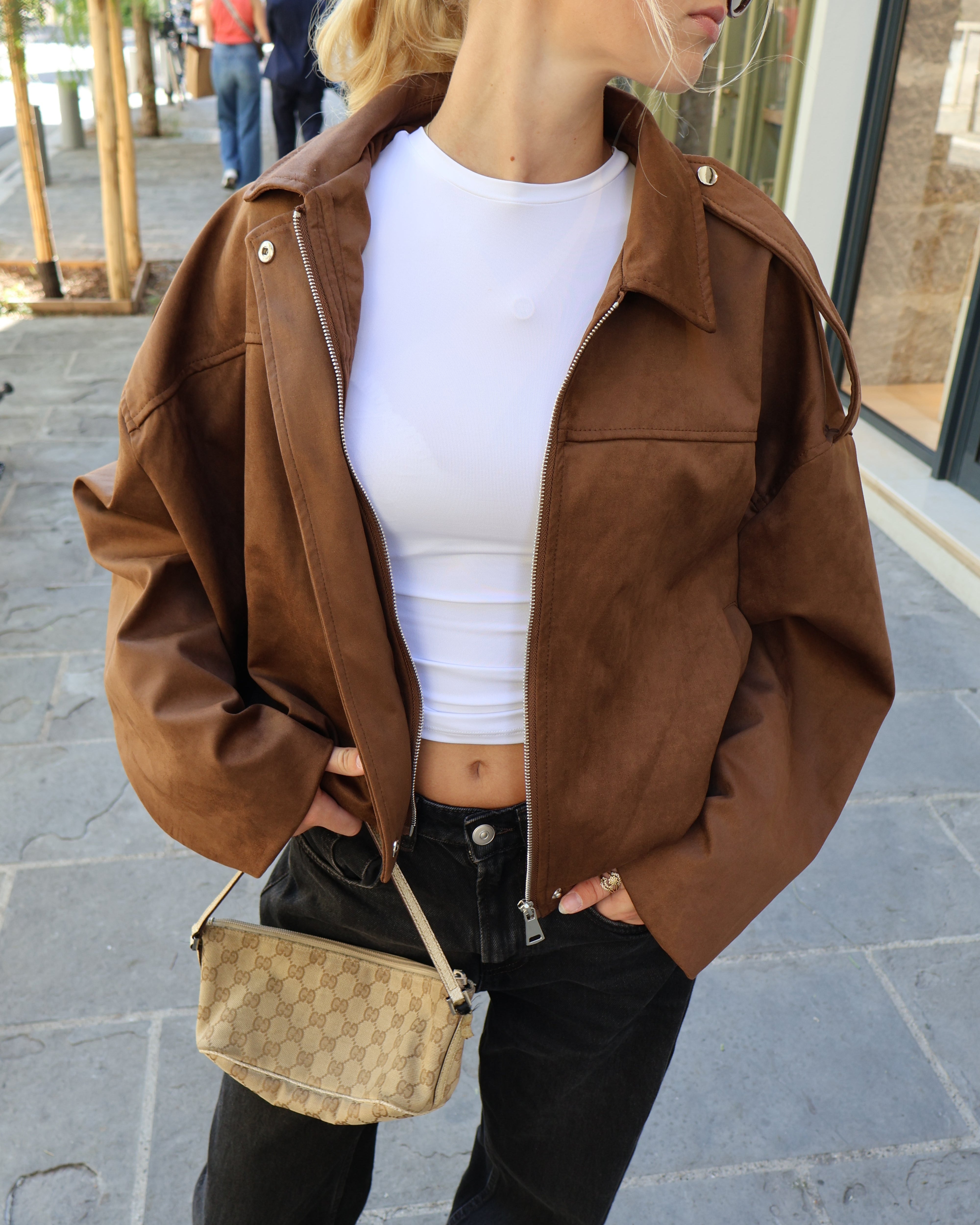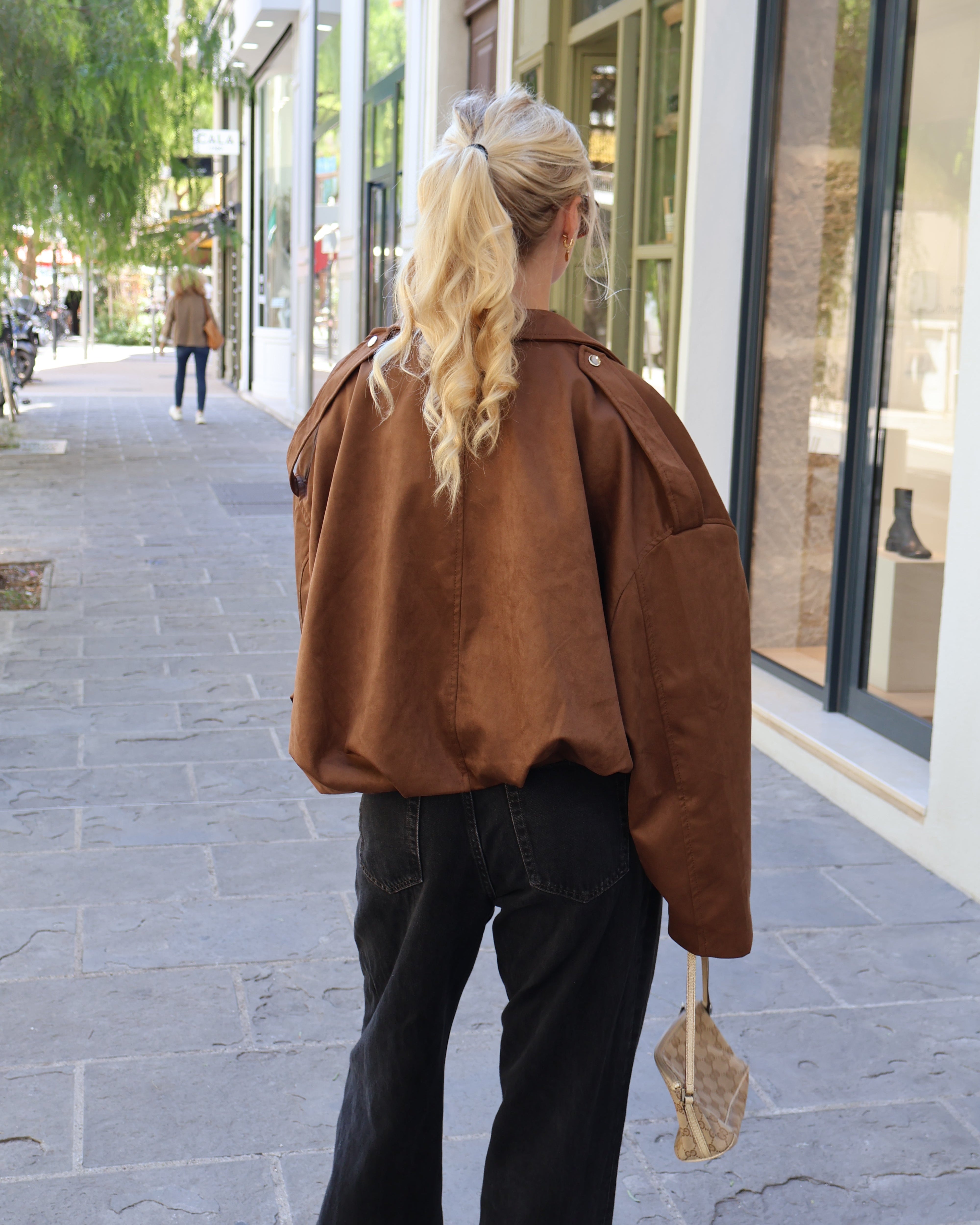 Adopte la Veste Céline de la nouvelle collection Galéa : un bomber oversize en suédine marron ultra tendance. Sa coupe ample et moderne t’assure un look décontracté mais stylé, facile à porter au quotidien comme pour sortir. Confortable, chic et hyper trendy, c’est la veste tendance de l'automne 2025 à avoir absolument dans ton dressing.